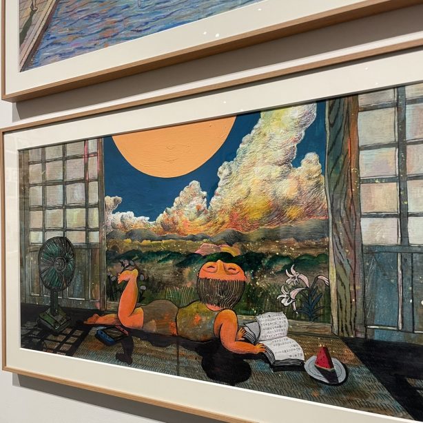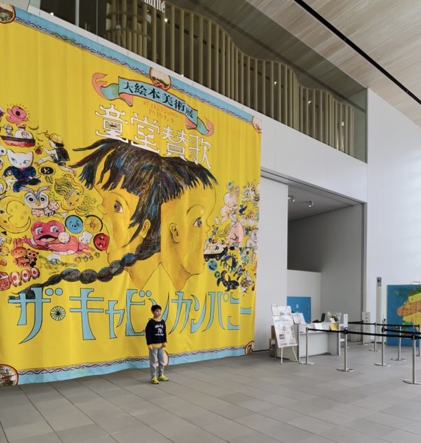 そんな建築空間の中で開催されていたのが、ザ・キャビンカンパニーによる大絵本美術展「童堂賛歌」でした。15周年という節目の年に実現したこの大規模な展覧会では、彼らの絵本原画や立体造形、映像作品の数々が一堂に会し、空間全体が物語の世界へと変貌していました。